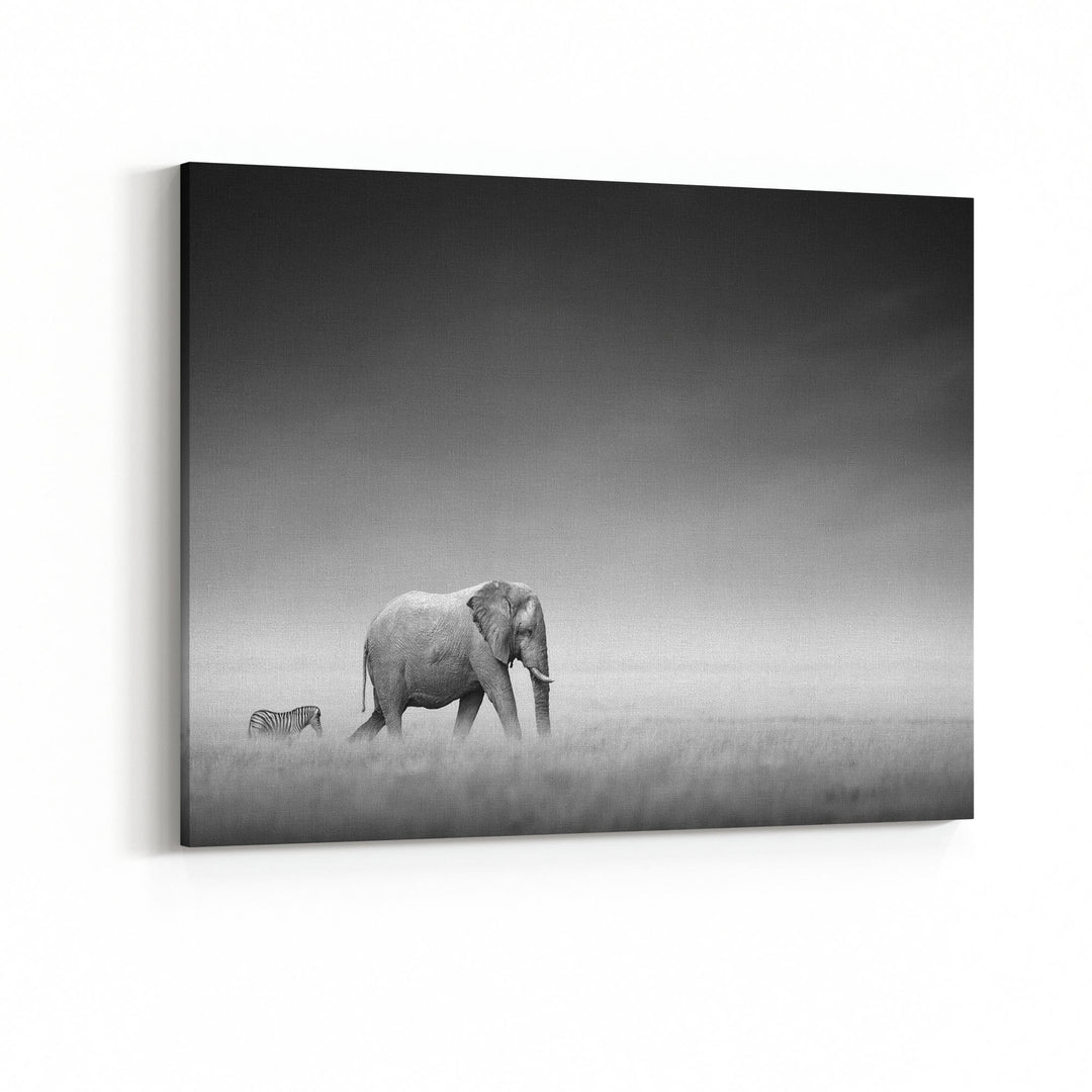 Obraz Słoń i zebra czarno-biały